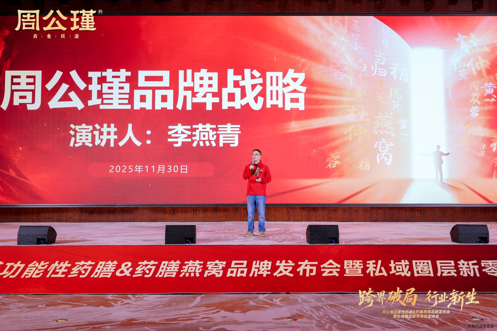 本次发布会内容丰富、环节紧凑,周公瑾品牌创始人、CEO李燕青登台发布了周公瑾品牌战略,他明确将周公瑾定位为全国首个“功能性食养药膳品牌”,并详细阐述了“全品类覆盖、大单品聚焦”的产品战略。