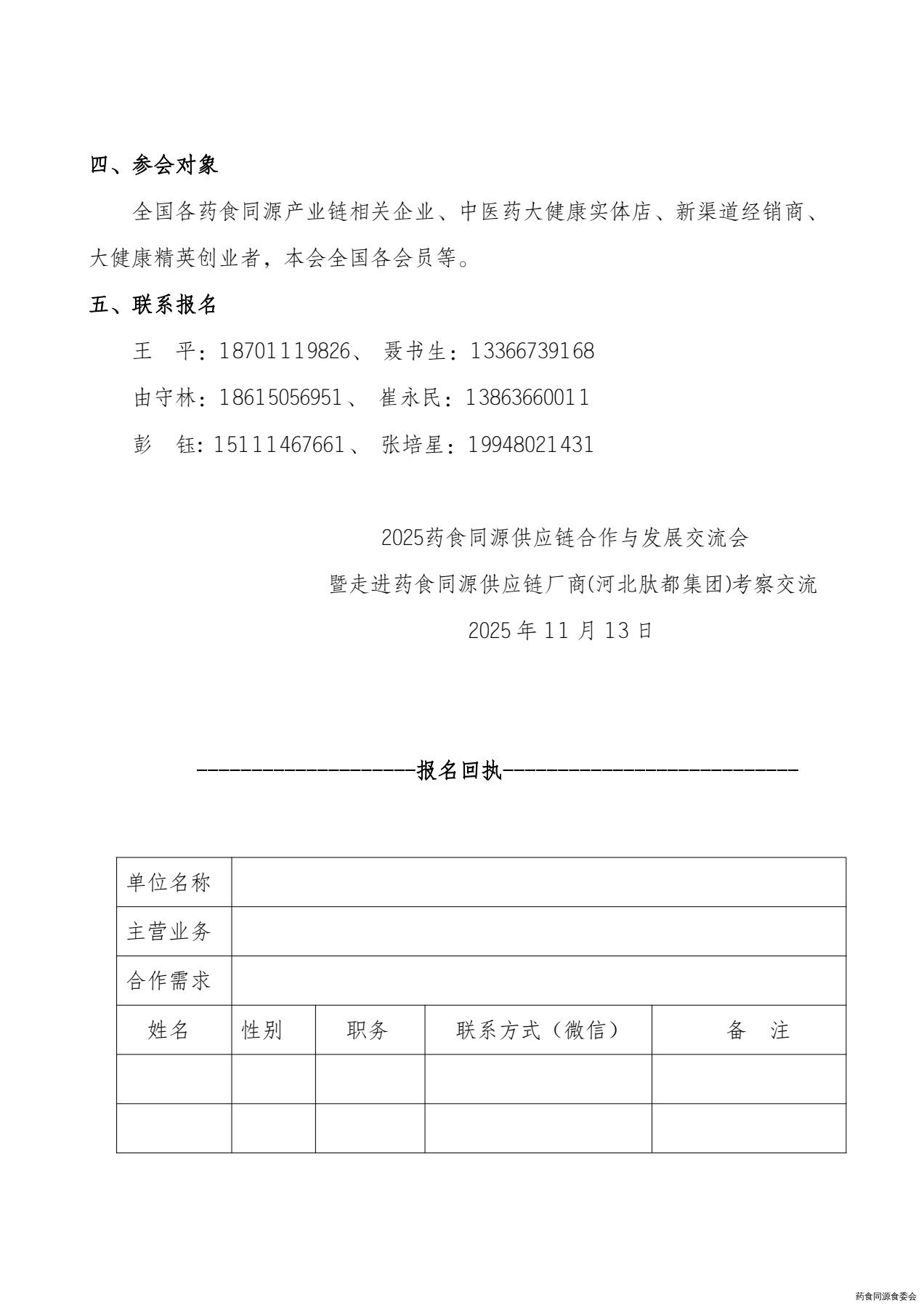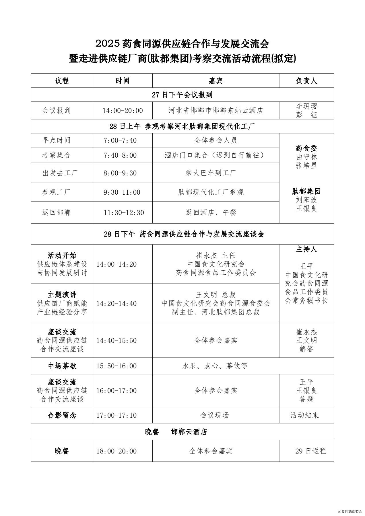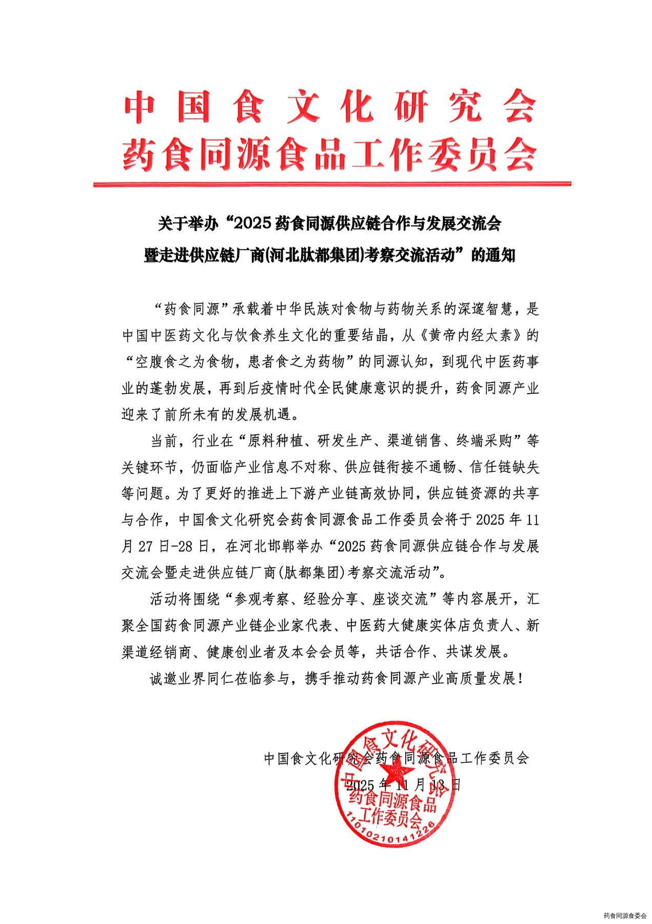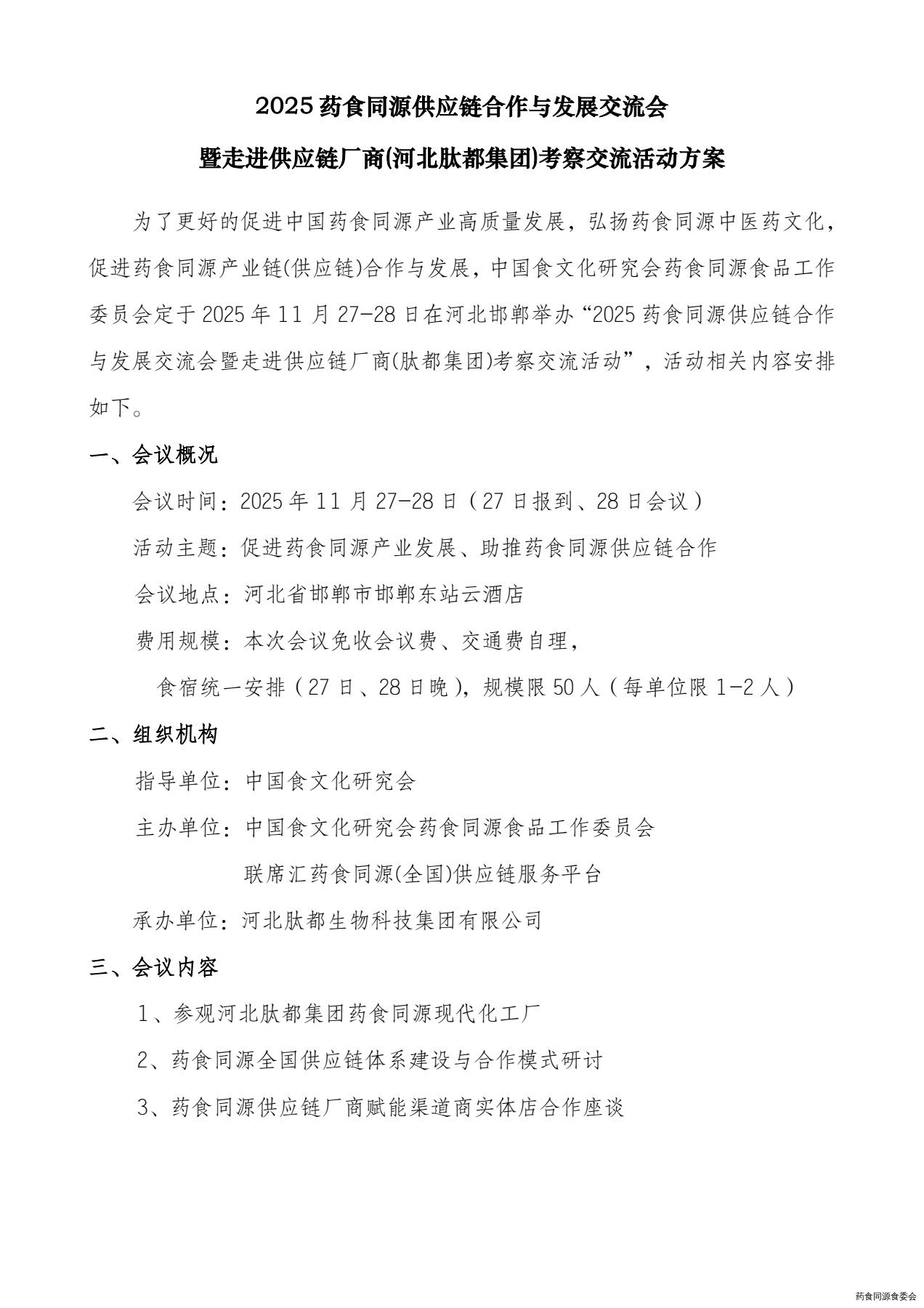 关于举办“2025药食同源供应链合作与发展交流会暨走进供应链厂商(河北肽都集团)考察交流活动”的通知